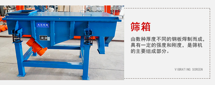 1、篩箱:由數(shù)種厚度不同的鋼板焊制而成,具有一定的強度和剛度,是篩機的主要組成部分。