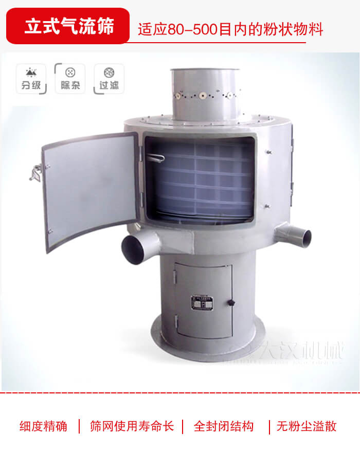 簡(jiǎn)述:立式氣流篩采用空氣作動(dòng)能作業(yè)原理,篩分效率達(dá)95%以上,產(chǎn)量是振動(dòng)篩的5-10倍。