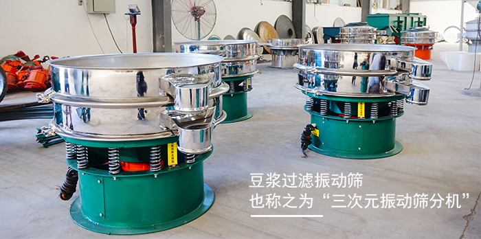 "大漢"DH系列豆?jié){過濾振動(dòng)篩產(chǎn)品,經(jīng)客戶多年使用,獲得大量的一線反饋建議,在自有成熟的篩機(jī)制造技術(shù)基礎(chǔ)上,大漢機(jī)械工程師以滿足客戶需求為標(biāo)準(zhǔn),多次技術(shù)改進(jìn),篩分效果更加優(yōu)越,采用"通用"新型動(dòng)力激振器,三維動(dòng)力更加突出,適用范圍更加廣泛,大漢機(jī)械公司可根據(jù)客戶需求設(shè)計(jì)特殊型號,無論物料是干是濕,是精細(xì)是粗糙,是比重大是比重輕,0-400目都可以篩選,不管是液態(tài),還是漿狀的0-600目都可以過濾。"大漢"旋振篩系列產(chǎn)品同時(shí)配備專門的篩網(wǎng)清理裝置,把堵網(wǎng)率降到低,過網(wǎng)率和處理精度得以有效提高。"大漢"具備特殊型號制造的能力讓顧客對"大漢"有更多的選擇。