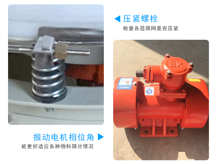 ⑸調(diào)節(jié)振動(dòng)電機(jī)上下偏心塊的相位角,以適應(yīng)各種物料篩分情況。