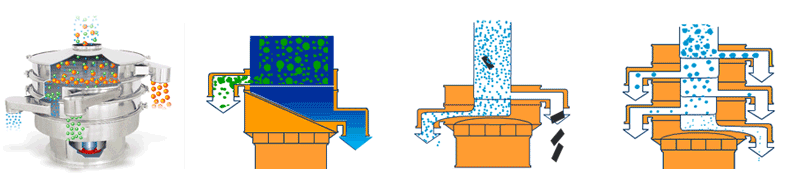 | 應(yīng)用 | 要用于物料原料的篩分和成品的最終生產(chǎn)檢驗,可以去除產(chǎn)品中的結(jié)塊和污染物,一次操作最多可提供5級分級。 | 適合高粘性、高靜電細(xì)粉,篩分精度可以提高80%以上,產(chǎn)量提高2-5倍。 | 模擬人工篩分的動作,產(chǎn)生了水平和投擲的三維滾動運動,適用于500目以內(nèi)的細(xì)粒狀物料,篩分精度提高了90-95%,產(chǎn)量是圓形振動篩的5-10倍。 | 適合一般的粗略篩分或除雜,的進(jìn)、出料口設(shè)計在同一垂直方向上,這樣會加快物料的排料速度,處理量是普通圓形振動篩的2-5倍。 | 經(jīng)常用在液體過濾行業(yè),可去除液體或懸浮物中存在的不需要的顆粒,當(dāng)然也是可以作為粉末除雜。可用在處理量較小的工廠或小型作坊。 |